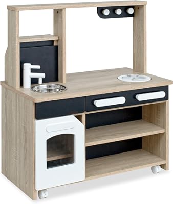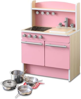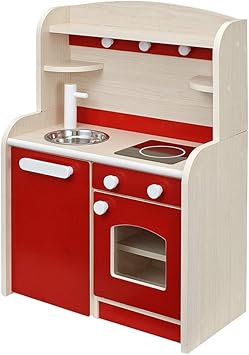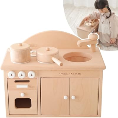 孫の2歳の誕生日にあげました。おままごとが大好きなので、ガスレンジやオーブン、動く水道に大喜びでした。クリスマスにあげた木のままごとセットと組み合わせて、想像力がどんどん広がっているようです。木のぬくもりはいいですね。